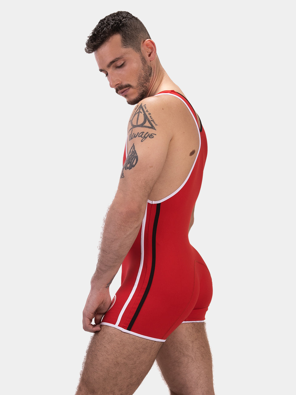 Wir stellen das Barcode Berlin Singlet Allan vor – ein gefeierter Wrestling-Anzug, der Sexyness nahtlos mit der Eleganz von Sportbekleidung verbindet.