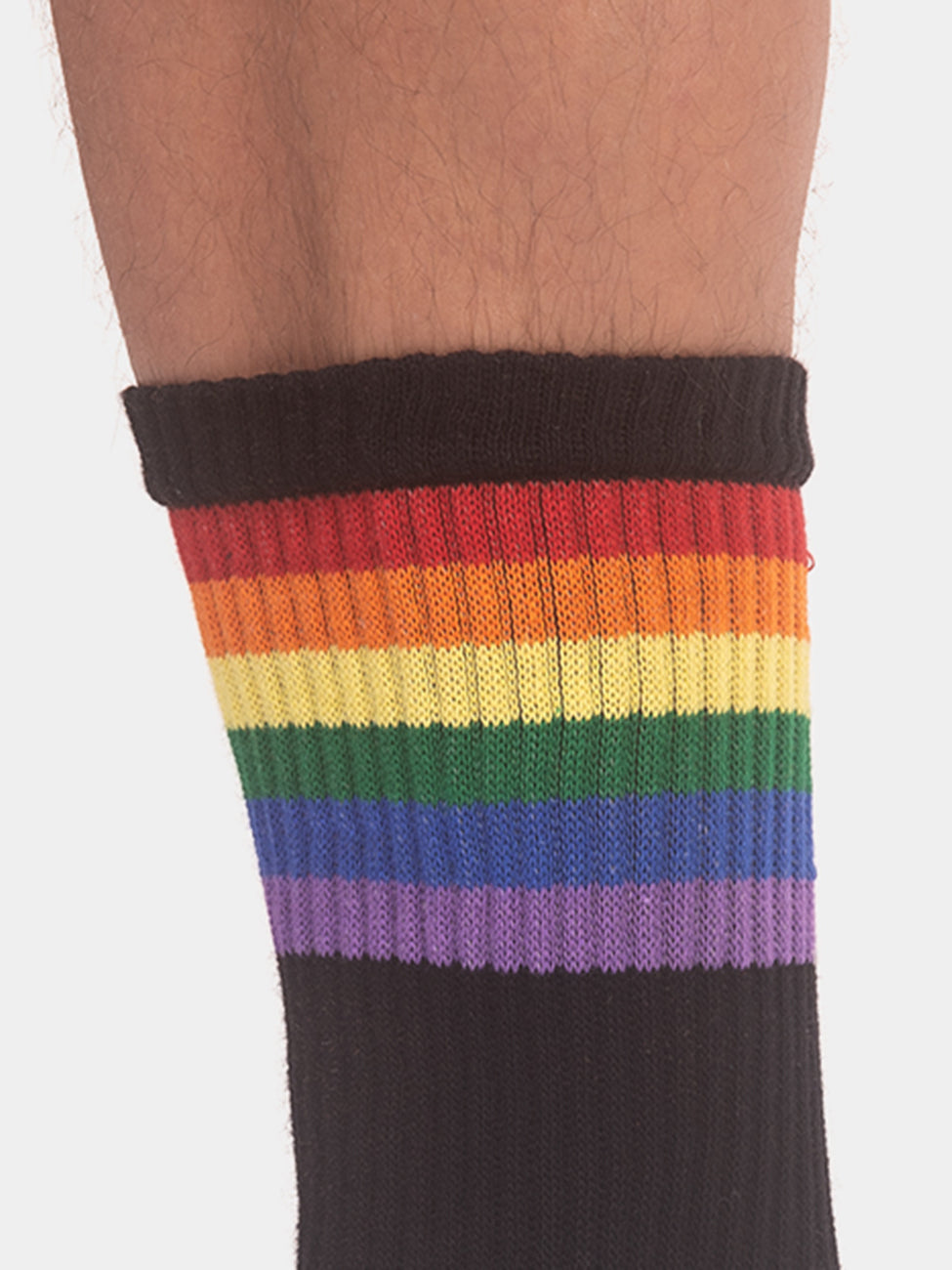 Die schwarzen Barcode Pride Gym Socks sind einfach wunderschöne Socken mit Regenbogenfarben am oberen Ende.