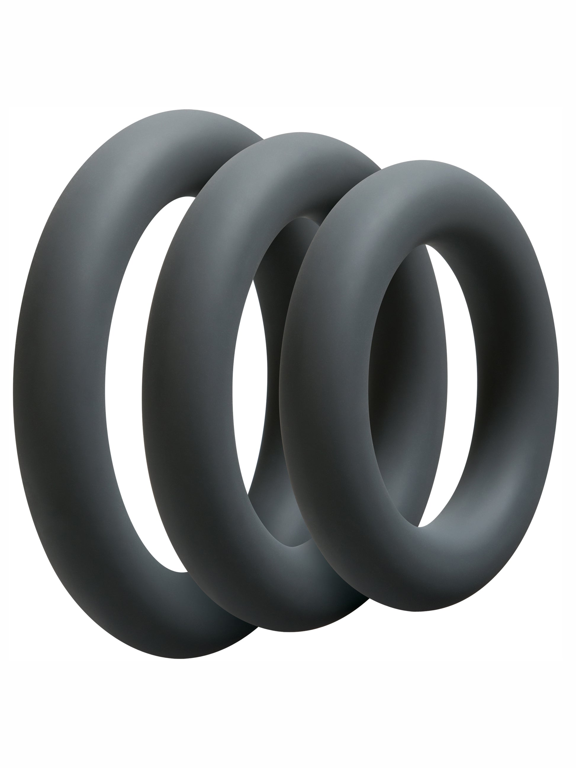Doc Johnson - OptiMALE Thick 3 Cockring-Set aus Silikon, Schiefergrau