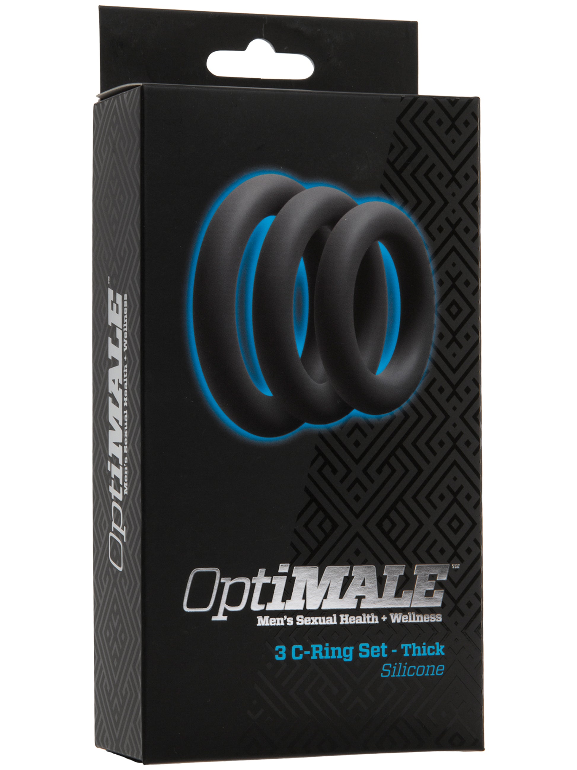 Das OptiMALE Thick C-Ring Set bietet verbesserte Größe und Umfang mit drei Ringen mit 32 mm, 38 mm und 42 mm Innendurchmesser.