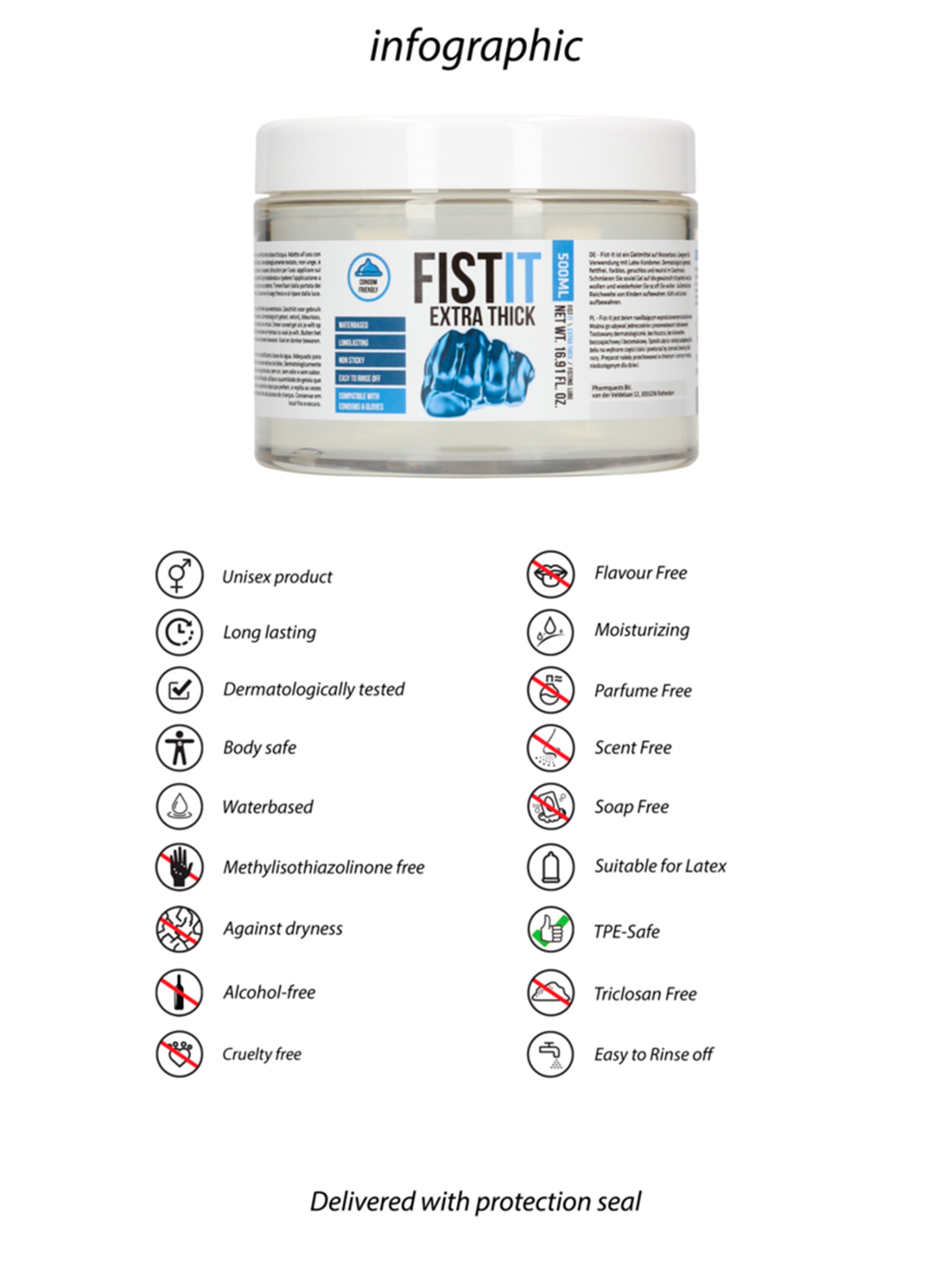 Fist It Professional ist ein Fisting-Gleitmittel auf Wasserbasis. Geeignet für die Verwendung mit Latexkondomen. Dermatologisch getestet, fettfrei, farblos, geruchs- und geschmacksneutral.