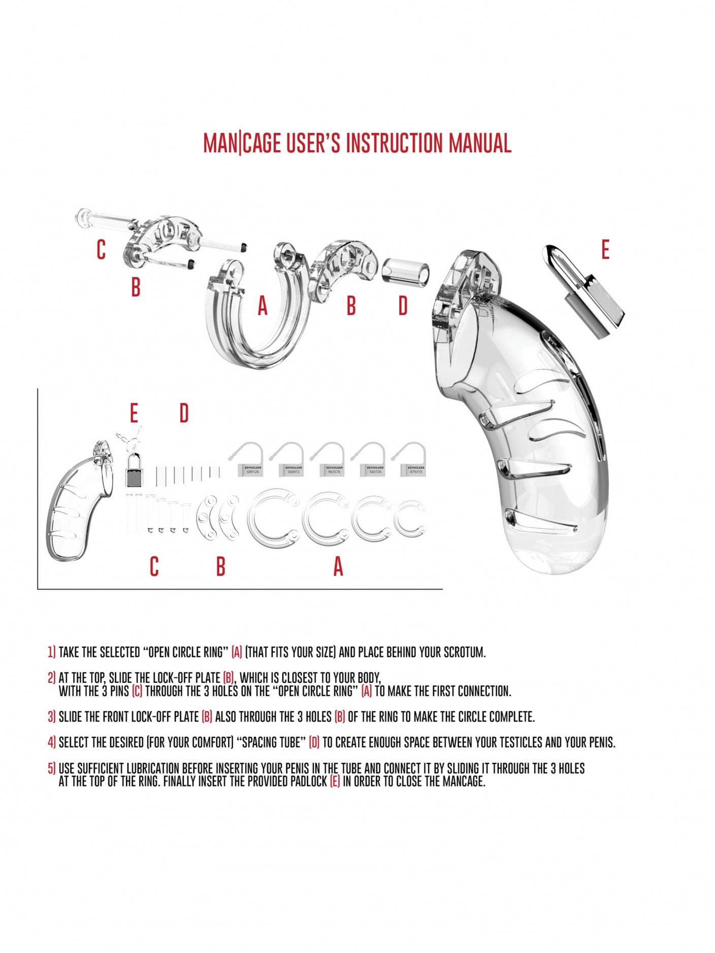 Die ManCage Keuschheitskäfige werden aus hochwertigem Polycarbonat hergestellt, einem sehr leichten, langlebigen und hypoallergenen Material. Der Käfig besteht aus drei Teilen, die perfekt zusammenpassen.