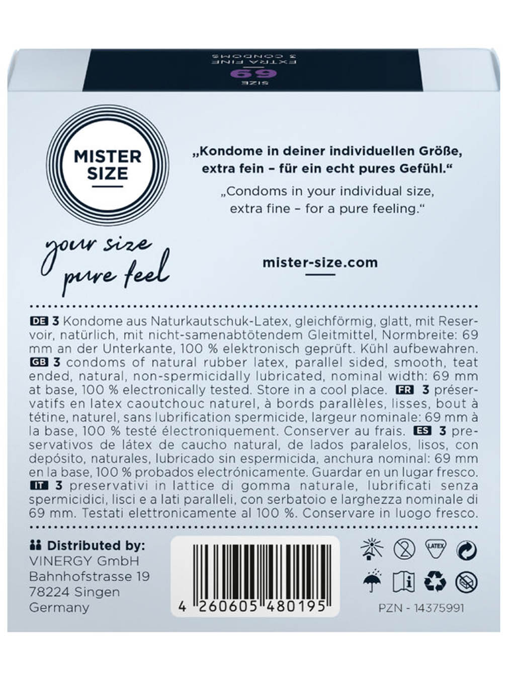 Große Jungs brauchen die richtige Passform. Erleben Sie intensives Vergnügen, Komfort und Sicherheit mit Mister Size Kondomen – maßgeschneidert für die Großbegabten.