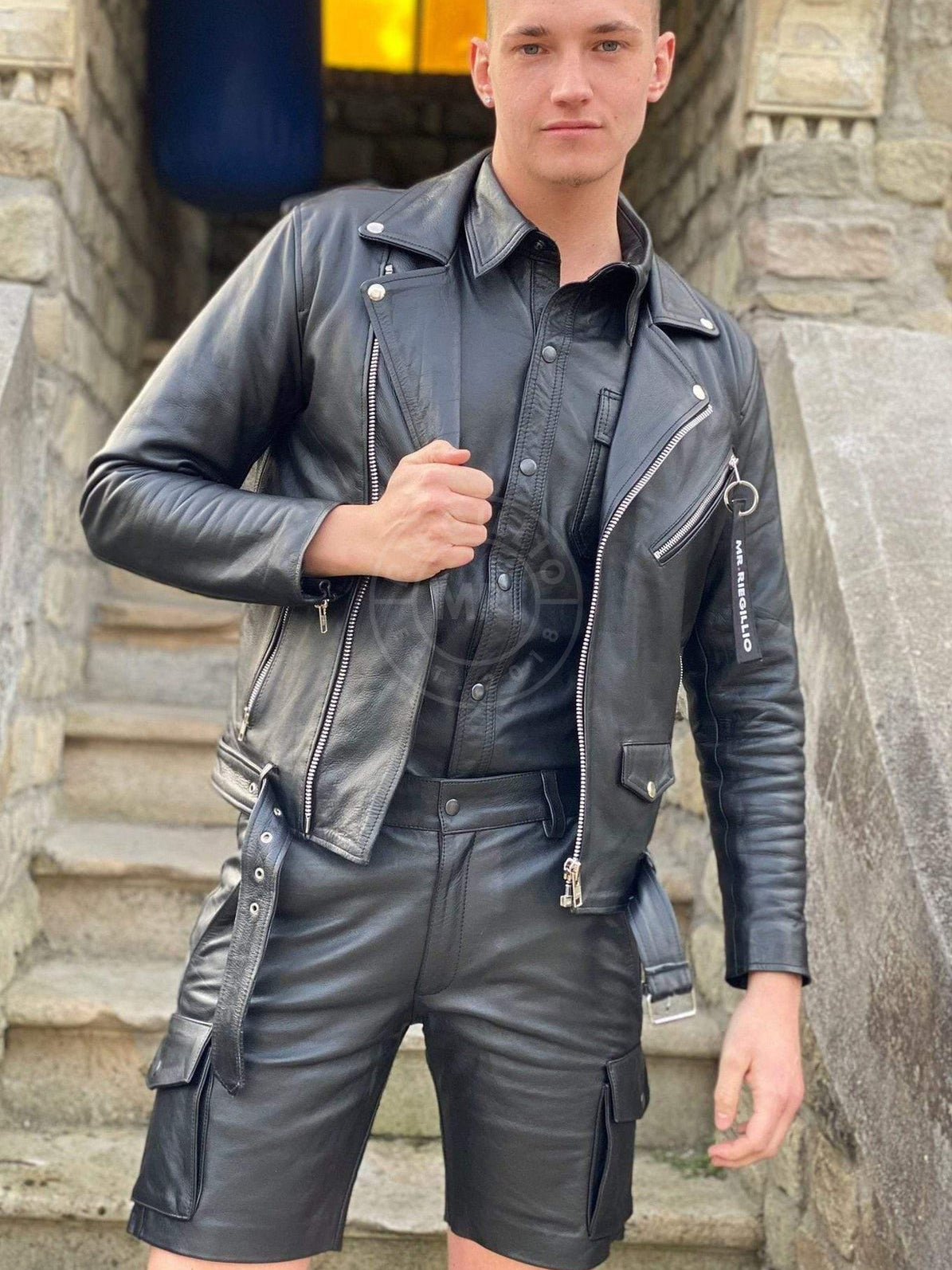 Mr. Riegillio – Die schwarzen Cargoshorts aus Leder bestehen aus 100 % Rindsleder, was für Stil und Haltbarkeit sorgt.