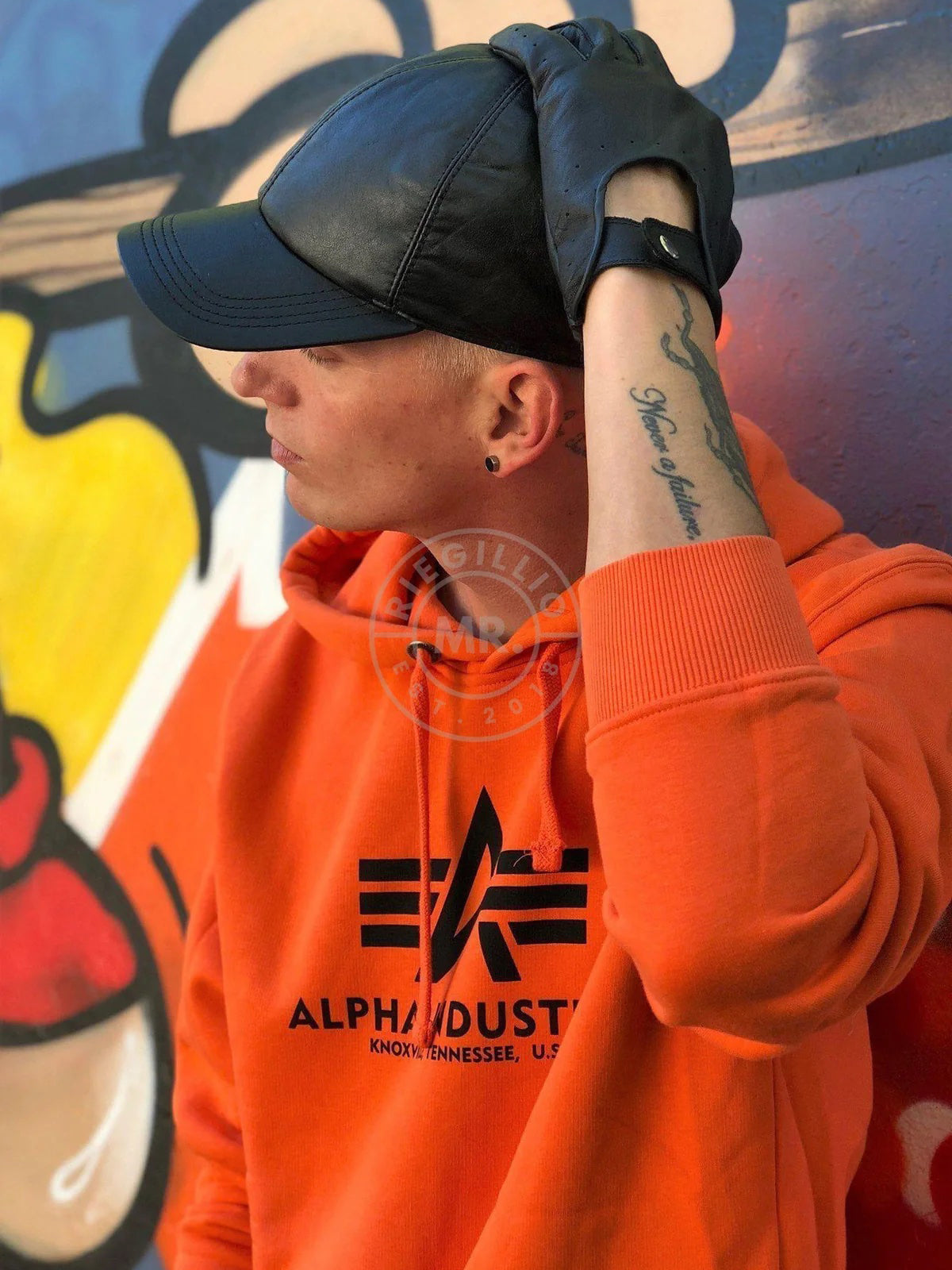 MR. Riegillio - Lederkappe Schwarz wurde aus 100 % Leder hergestellt und ist auf der Rückseite verstellbar, wo Sie ein kleines MR RIEGILLIO-Zeichen finden.