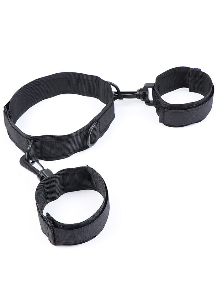 Dieses vielseitige Hogtie-Set aus Nylon umfasst ein verstellbares Halsband und Handschellen und ist sowohl für Anfänger als auch für erfahrene Kink-Enthusiasten perfekt geeignet.