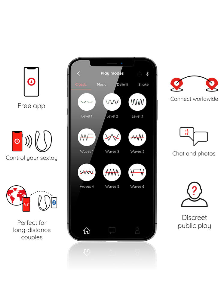 Schalten Sie mit der ONINDER™-App neue Funktionen zur Spielzeugsteuerung frei. Berühren Sie den Bildschirm Ihres Smartphones, um die Vibrations- und Intensitätseinstellungen auch aus der Ferne zu ändern.