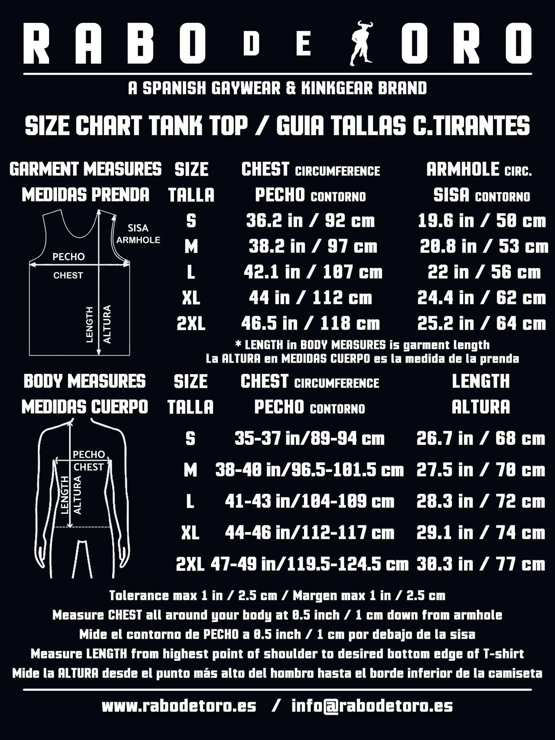 The RABO DE TORO tank top is cut in a fashion fit: a bit fitted in the body and quite small to armhole.