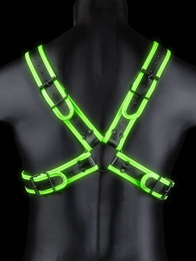 Schnall dich in dieses Harness und optimiere deine maskuline Figur. Das Harness ist verstellbar und passt sich so jeder Figur an. Autsch! Glow-In-The-Dark-Produkte müssen vor dem Tragen im Dunkeln mit Sonnenlicht aktiviert werden.