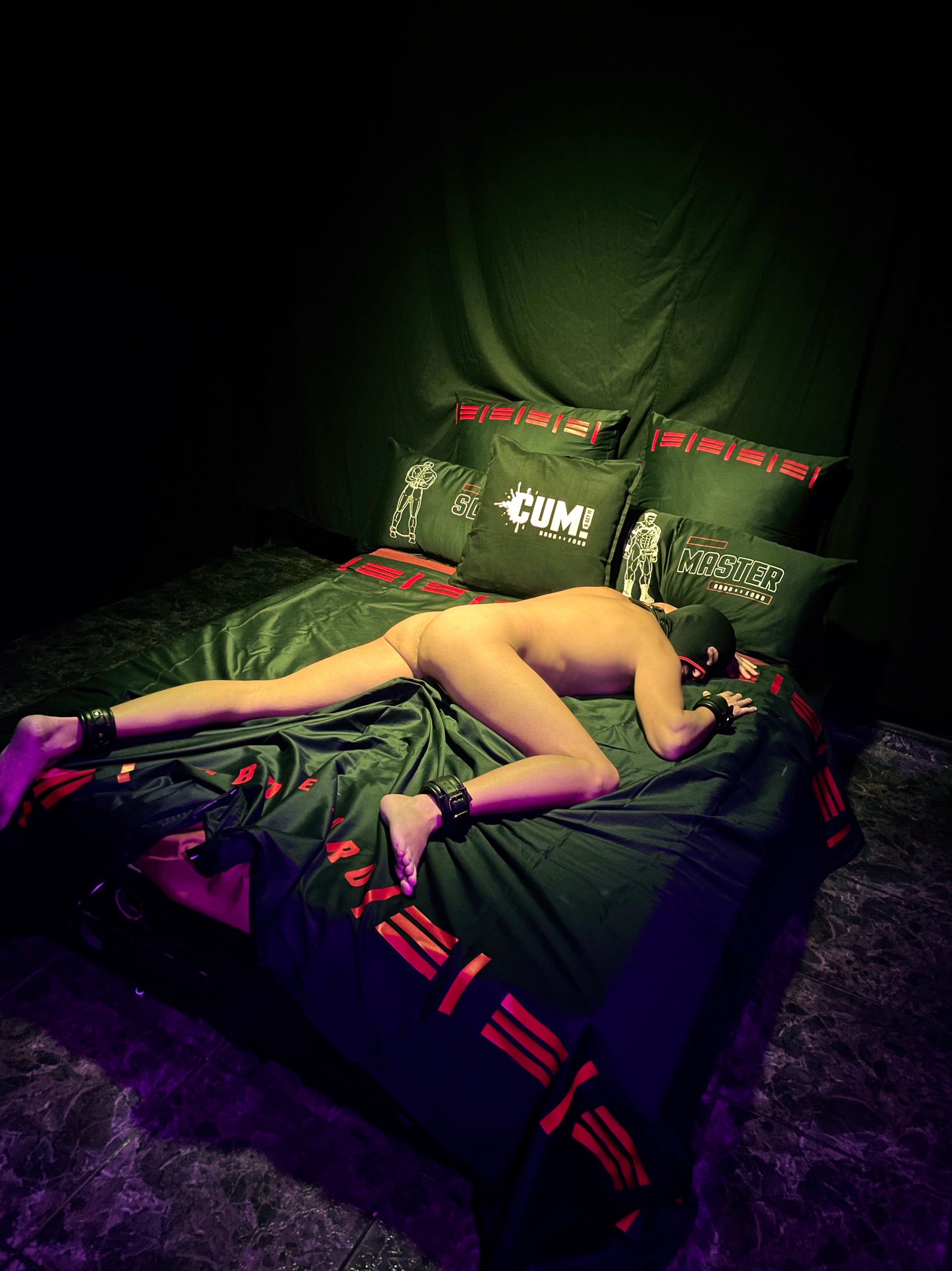 Verwandle dein Zuhause in einen unverkennbaren Altar des Kinks mit dem CUM & GET IT! Kissenbezug von Rabo de Toro – ein dreckiges, kühnes Meisterwerk für schwule Männer, die ihre saftigen, unordentlichen Gelüste jeden Tag ausleben. Das ist nicht einfach Wohnkultur, sondern eine offene Einladung, ein spritziges Signal an Subs, Tricks und Spaßsuchende, die hart, dreckig und ohne Scham spielen wollen.