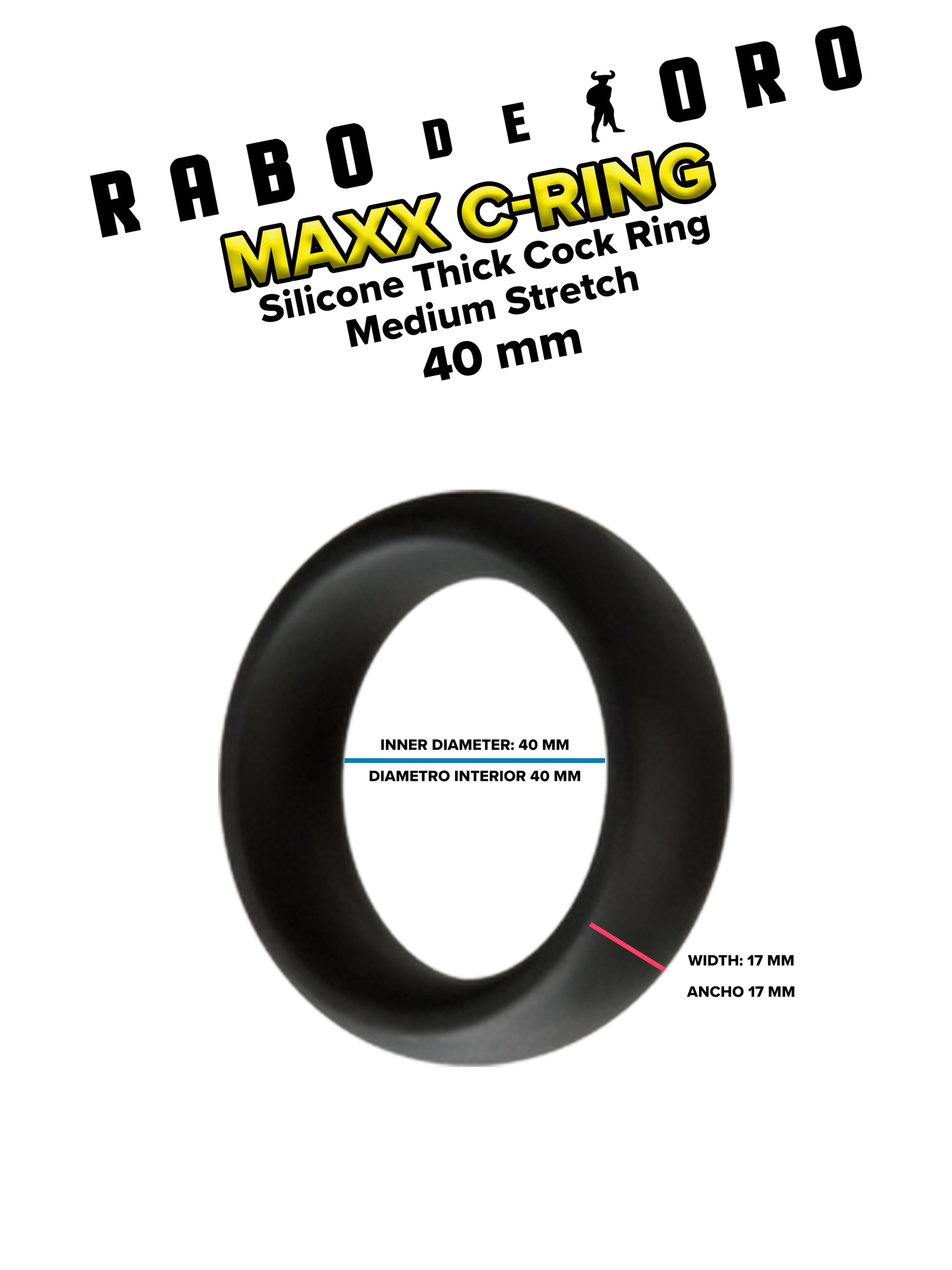 Hol dir die saftige, pulsierende Beule mit dem MAXX C-RING von Rabo De Toro! Dieser dicke, kräftige Penisring aus hochwertigem Silikon mit genau der richtigen Dehnbarkeit sorgt für einen steinharten und geäderten Penis. Mit einem Innendurchmesser von 40 mm ist er eng und bequem – perfekt, damit dein Penis dick, schwer und einsatzbereit bleibt.
