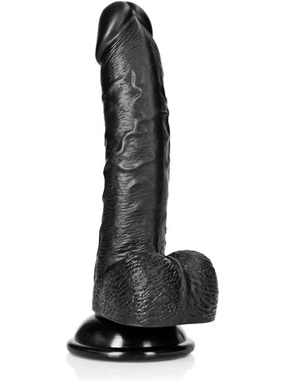RealRock - Gebogener realistischer Dildo mit Hoden und Saugnapf Schwarz 7" / 18 cm