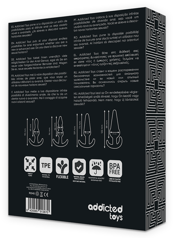 Addicted Toys sabe lo que necesitas, por eso te presenta este fabuloso set de plugs anales de múltiples formas y diseños.