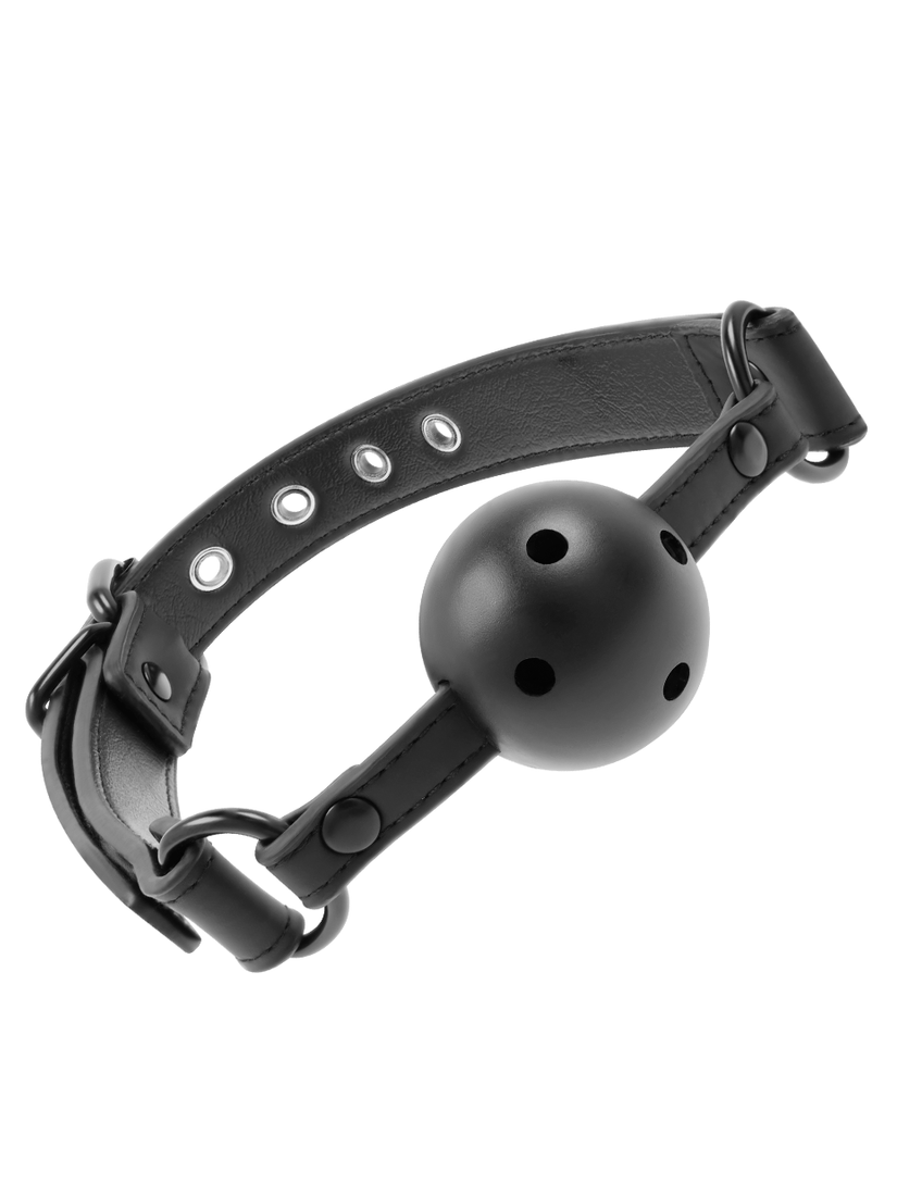 La colección Fetish Submissive presenta esta mordaza de bola transpirable de cuero PU perfecta para tus juegos BDSM.