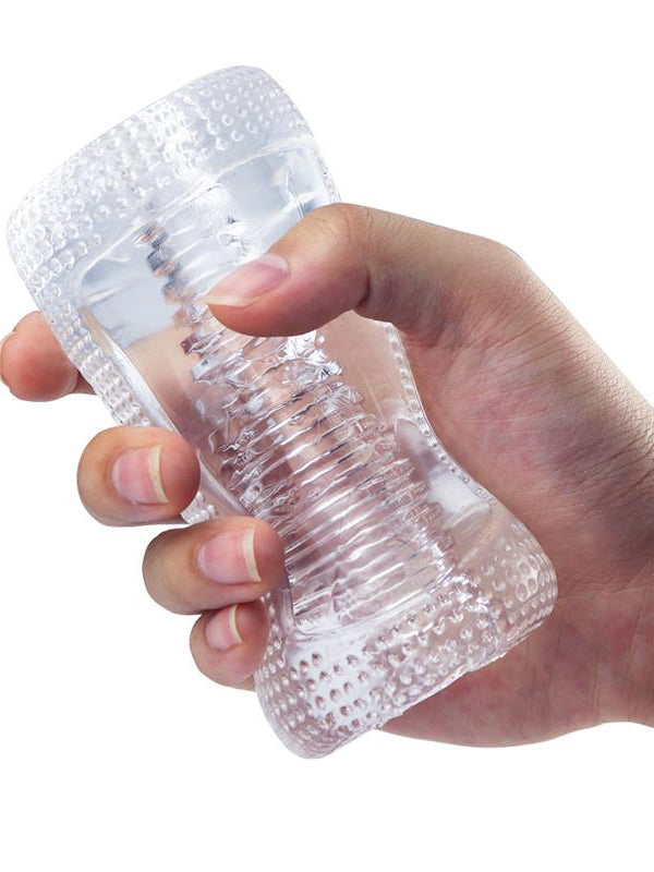 Recuerda limpiar tu masturbador con un limpiador de juguetes y agua tibia y secarlo bien. Utiliza tu lubricante a base de agua favorito para una experiencia extra húmeda.