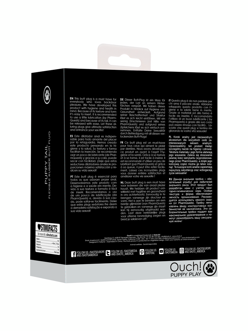 Deja que este seductor plug te proporcione la máxima satisfacción y eleve tu vida sexual. ¡Ya sea en solitario o en pareja, el Ouch! Puppy Tail Butt Plug es la solución.