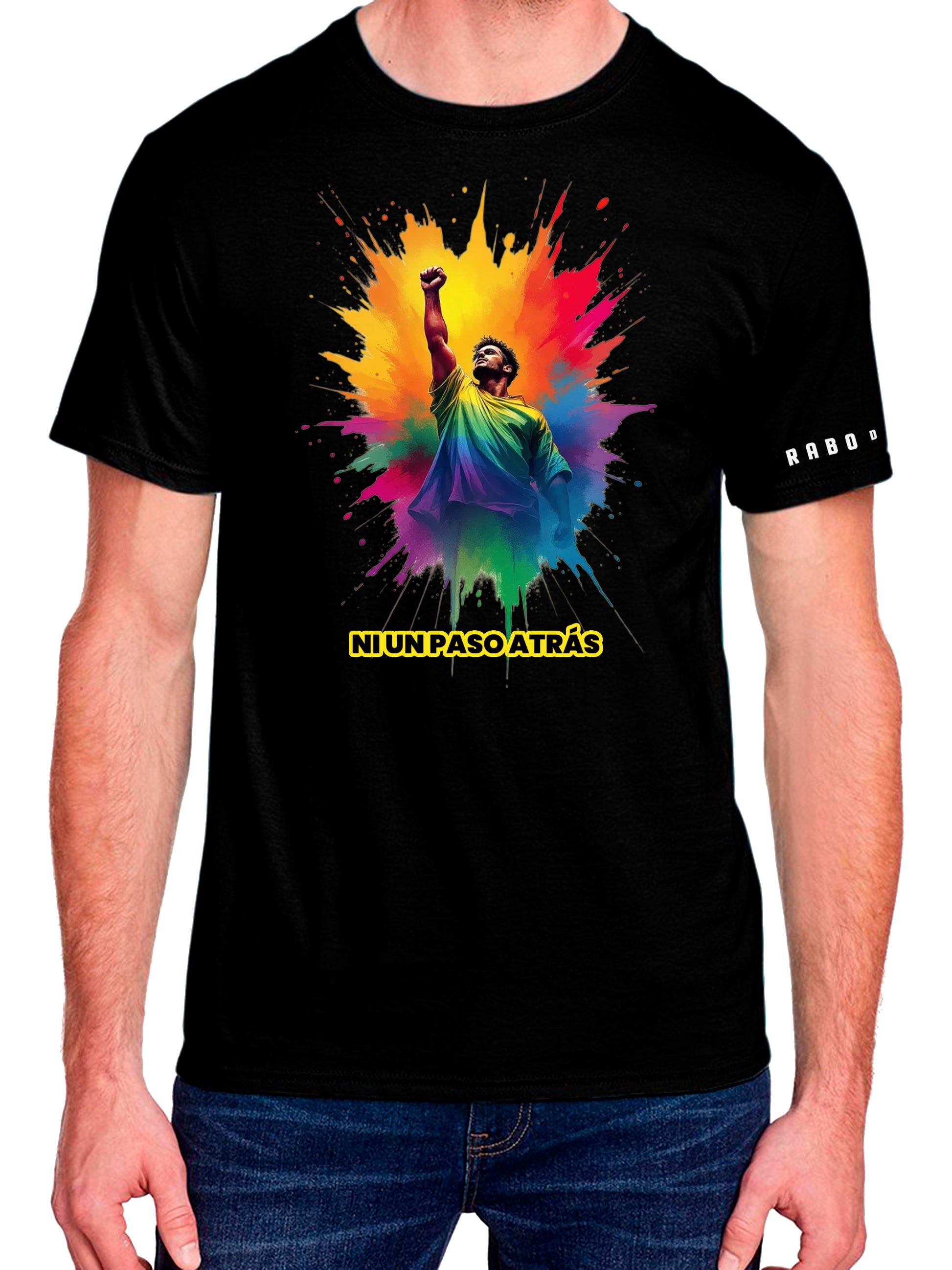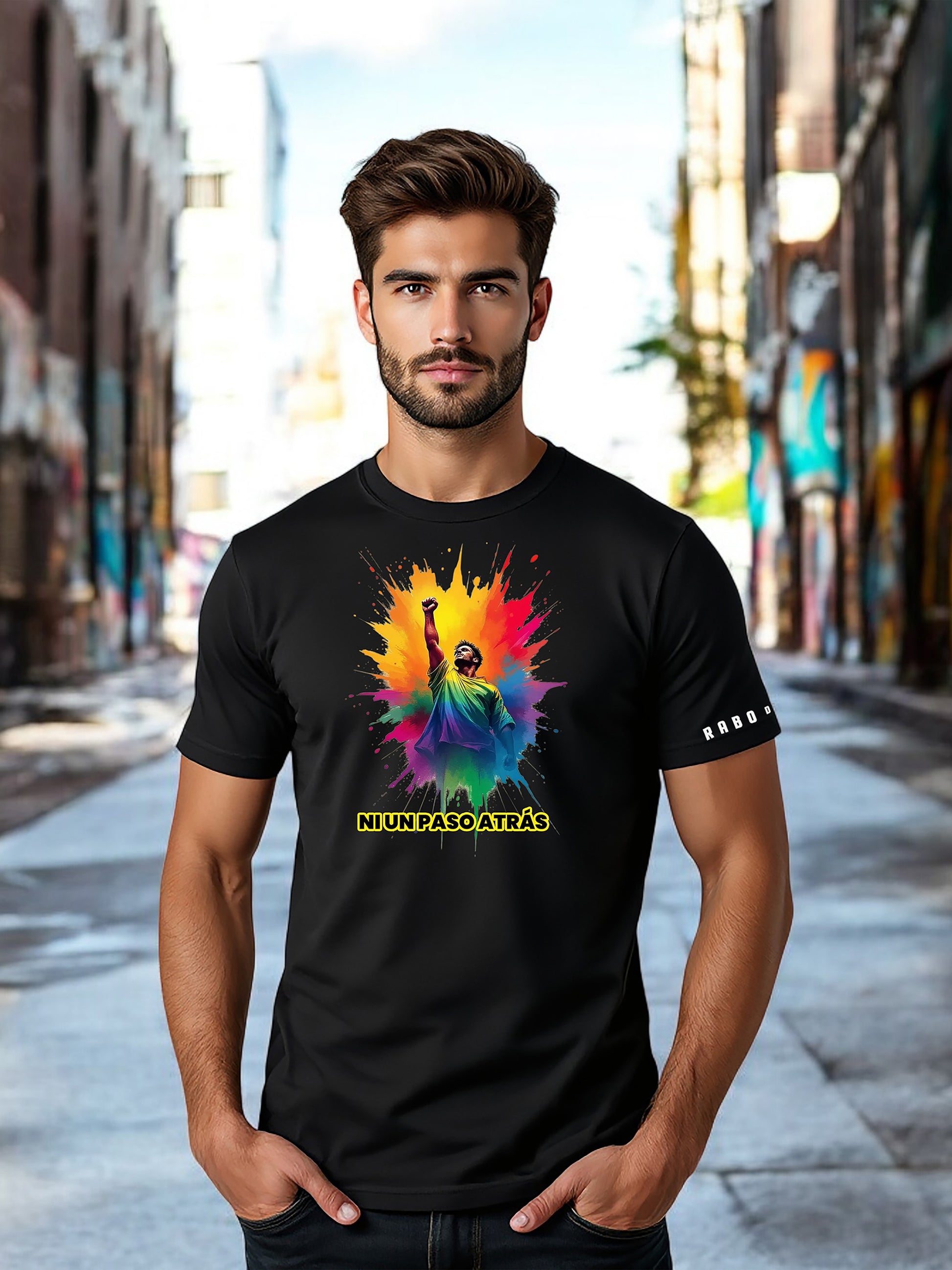 Con un llamativo diseño de un manifestante con la mano extendida, respaldado por una explosión de arco iris, esta camiseta es un poderoso símbolo de resistencia, resiliencia y orgullo. El mensaje, "Ningún paso atrás", habla de la urgencia de nuestro momento actual: mientras los derechos LGBTQ+ se ven atacados en todo el mundo, ahora es el momento de permanecer unidos y negarnos a renunciar a las libertades por las que nuestra comunidad ha luchado tanto.