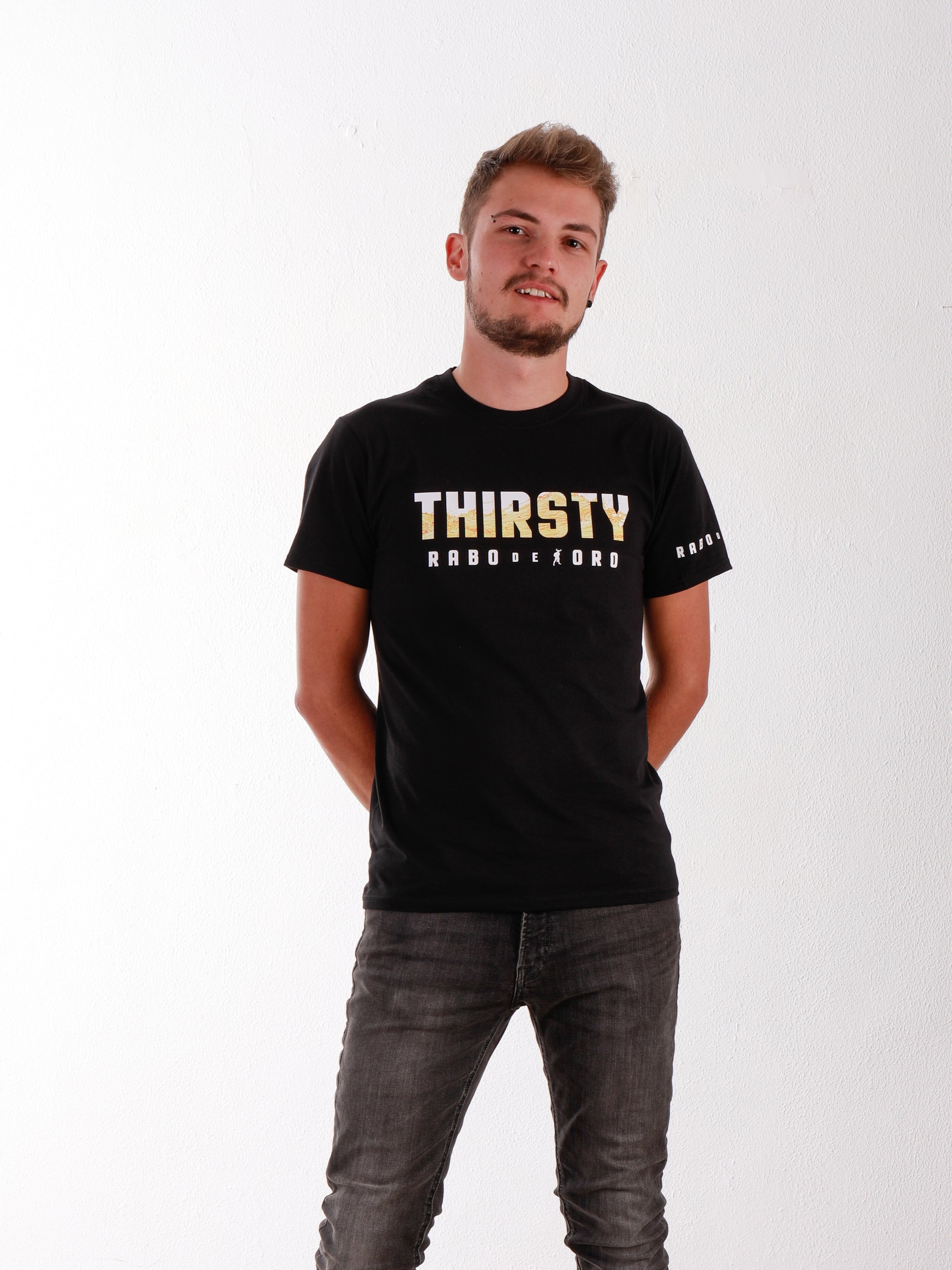 THIRSTY Camiseta negra con detalle de deportes acuáticos amarillos
