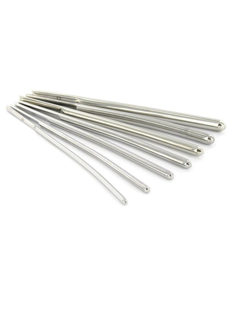 Dilatador uretral fabricado en acero inoxidable de grado médico, que es seguro e higiénico.