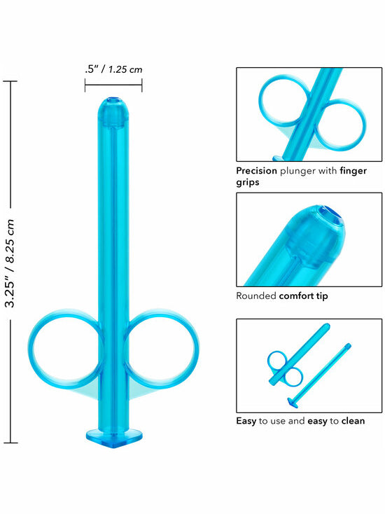 Made from durable, body safe ABS, the syringe has a sleek contoured design for comfortable and direct application. The tube is easy to fill with quality lube and disperses the correct amount just where you want it. Avoid unnecessary mess and waste by applying the exact amount of lube every time. The compact tube measures 3.25”x .5” / 8 cm x 1 cm and has a handy cap for travel use.