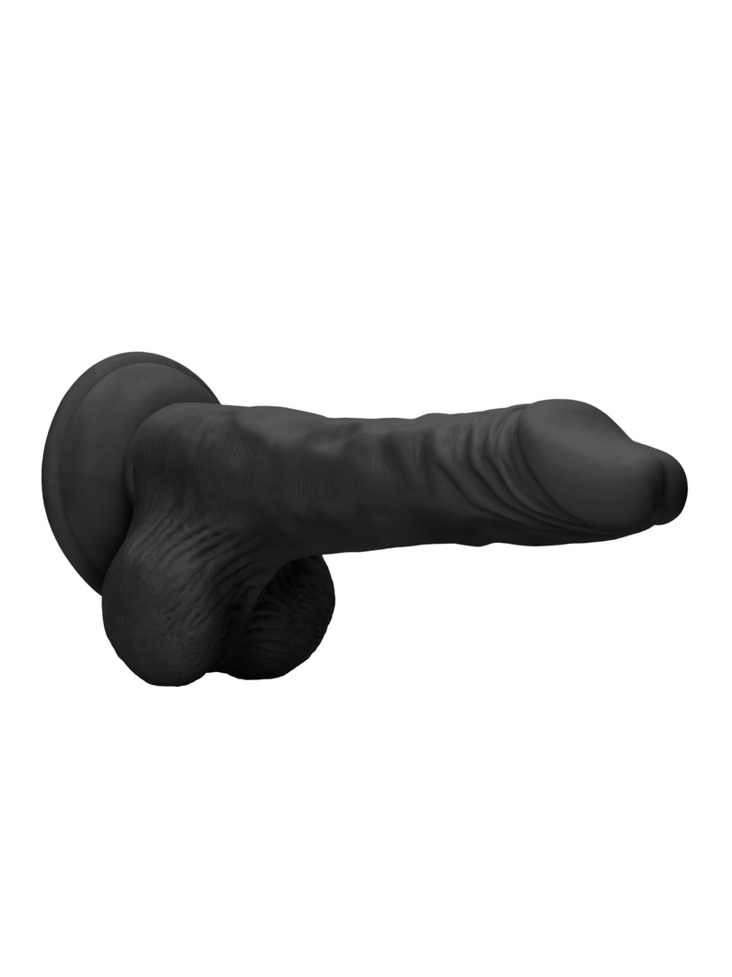 RealRock - Realistic Dong with Balls and Suction Cup Black - 10" / 25 cm