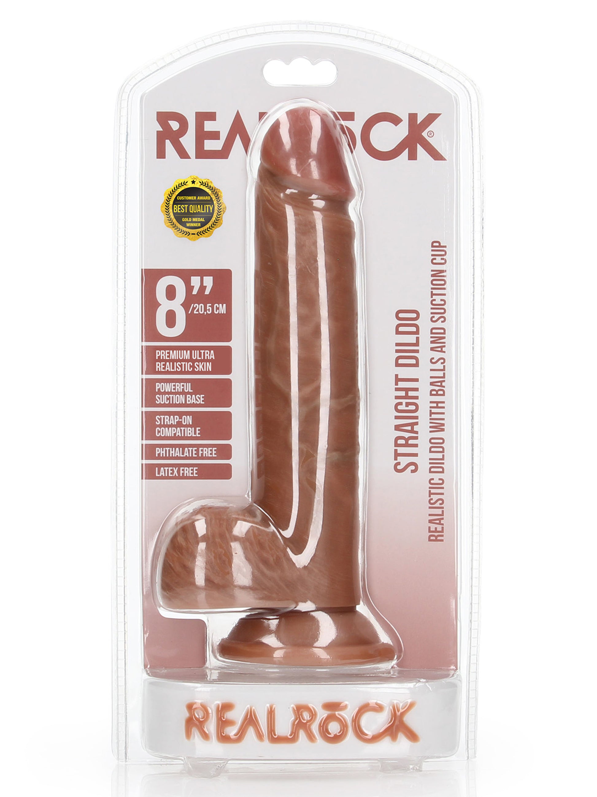 RealRock - Straight Realistic Dildo with Balls and Suction Cup Tan 8" / 20,5 cm