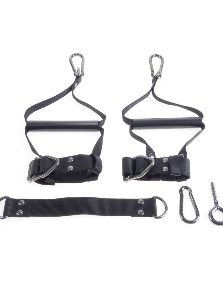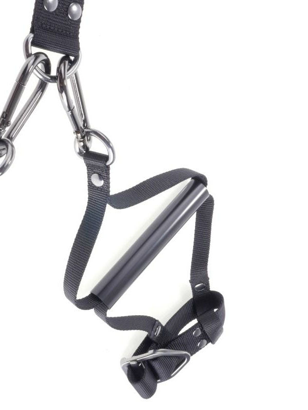 Versatile design secures wrists firmly from above, safely held by the sturdy anchor screw included. The Suspension Cuff Set wraps each individual wrist with thick, durable industrial-strength nylon straps with fully adjustable stainless steel lock rings, allowing for a controlled, custom fit every time. Each suspension cuff features a strong metal hanging bar for supported suspension play.