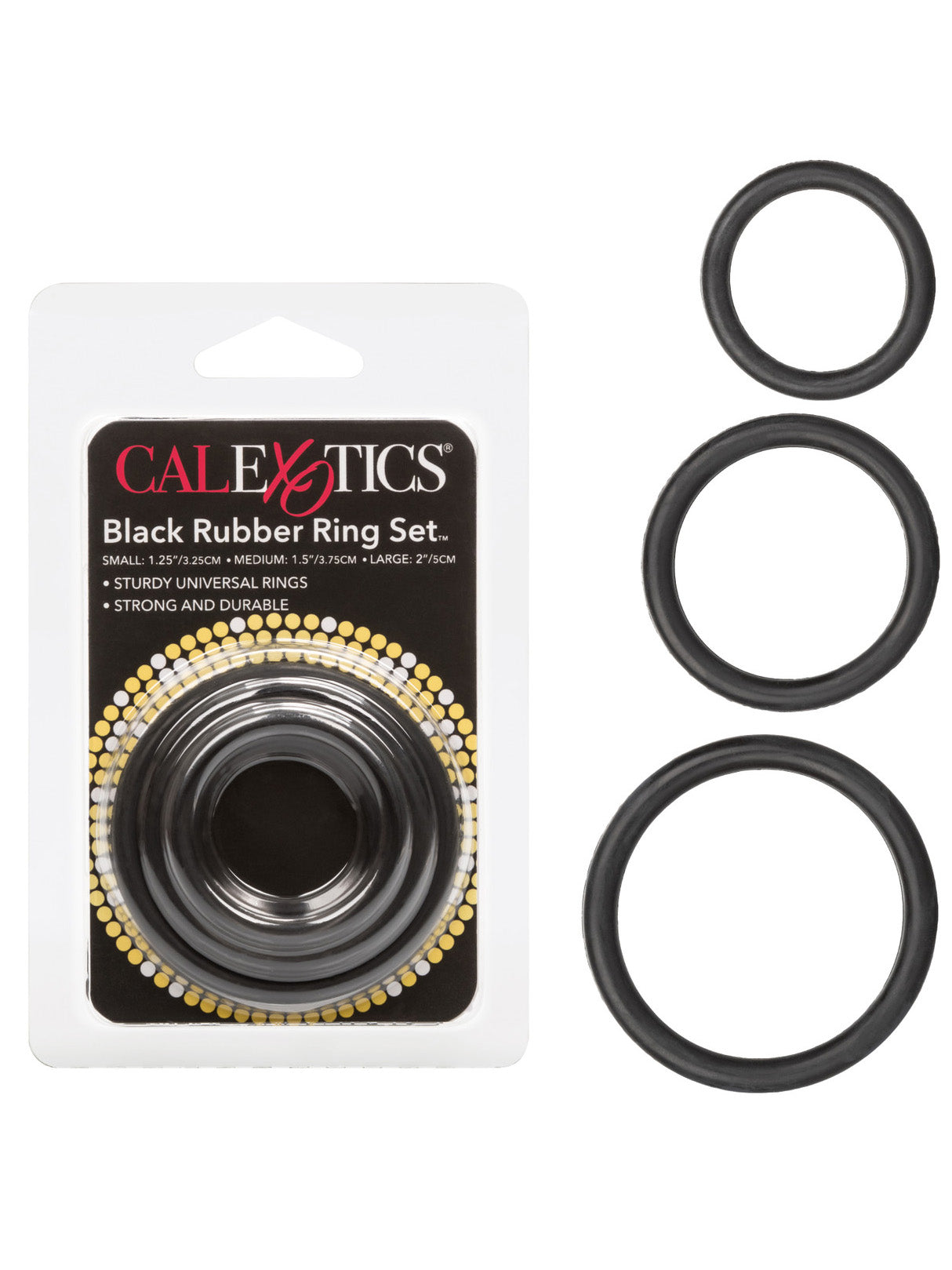Enhance your erotic sensual satisfaction and performance with the sleek and discreet Rubber Ring Black 3 Piece Set.