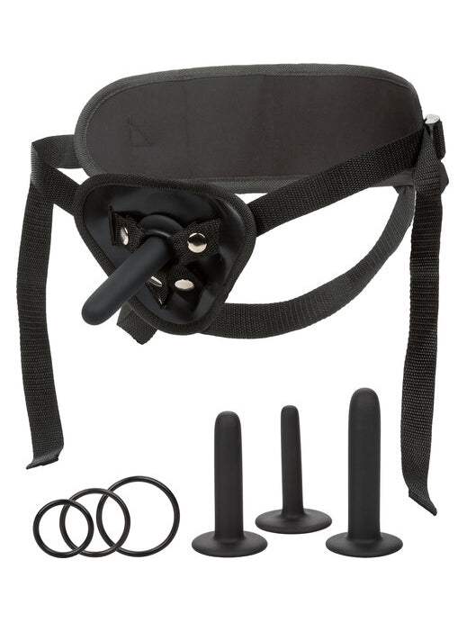 The Boundless™ Silicone Pegging Kit is made to thrust you into the thrilling world of endlessly satisfying pleasure. This anal pleasure set is made to play with 3 graduated sizes of pegging probes, a universal harness, and 3 graduated sizes of support rings.