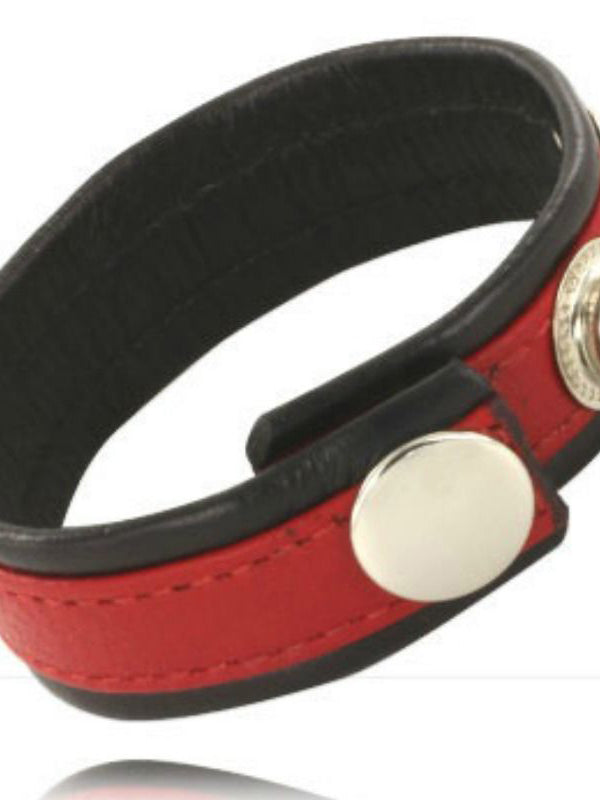 Rainbow Leather Cock Ring-Strap Black & Red - Leather cock strap with three snaps for the perfect fit.