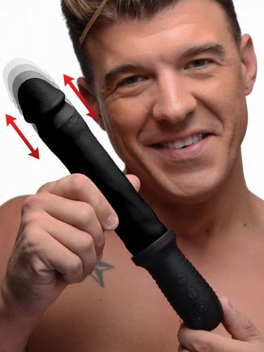 Master Series - Auto Pounder - Vibrating and Thrusting Dildo with Handle have a realistic design what provides a genuine feel with its defined phallic head and lengthwise veins that snake up and down its black shaft.