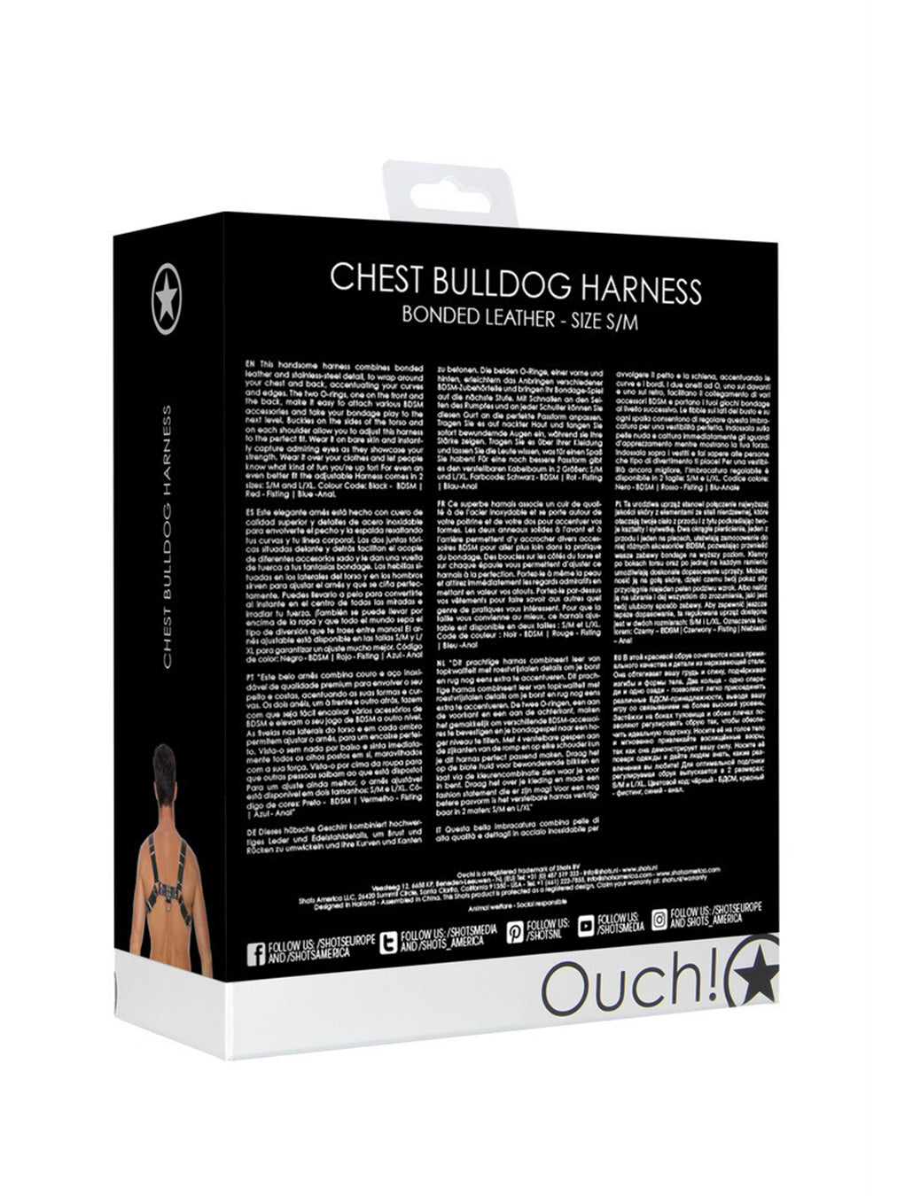Hamul pentru piept din piele lipită PU Ouch Bulldog Negru este destinat adepților modei fetish.