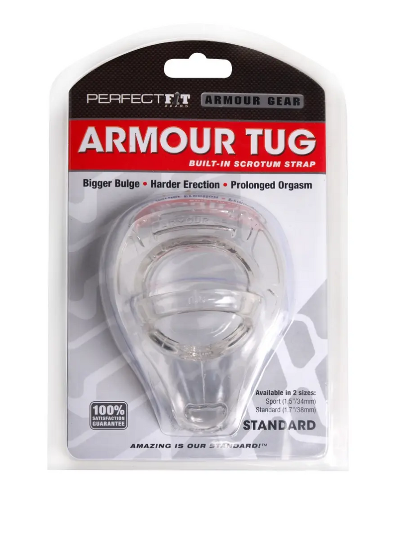 Elevate your sexual experience with the Armour Tug Cockring with Ball Strap. Whether you're looking to enhance your bulge, boost your erection, or intensify your orgasms, this innovative accessory delivers. Perfect for solo play or spicing things up with a partner, the Armour Tug is your go-to for an unforgettable experience.