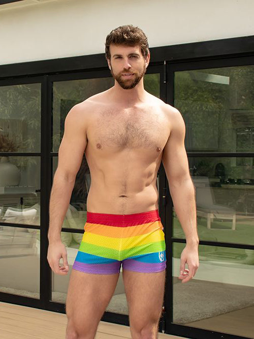 Andrew Christian Pride Stripe Mesh Jogger Shorts