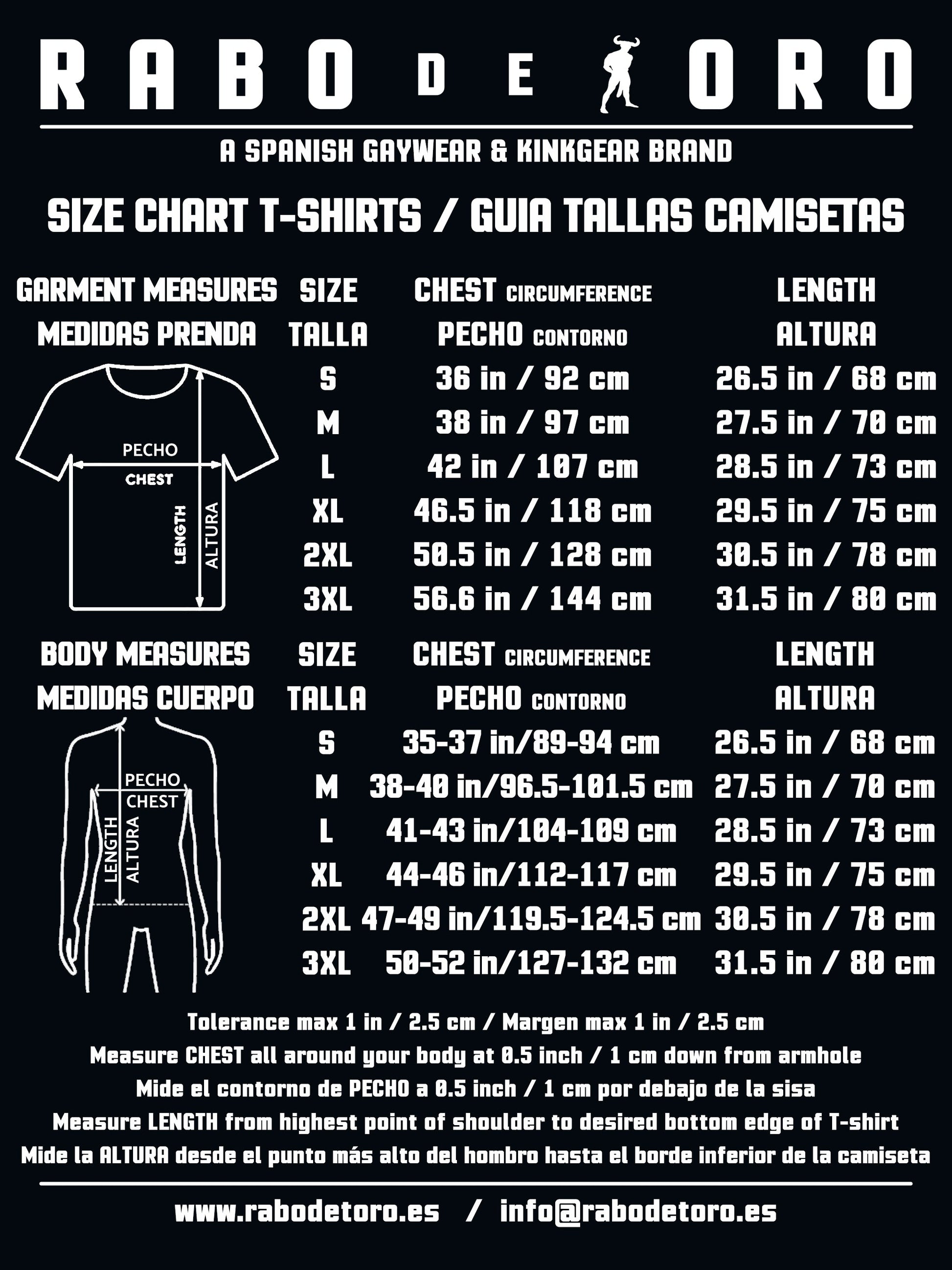 Design Line in Hanky Color Code: choose from Red (Fist), Yellow (Watersports) or Dark Blue (Backdoor) - Choose desired color details as Secondary Color - White Rabo de Toro logo on center front and on left sleeve.
