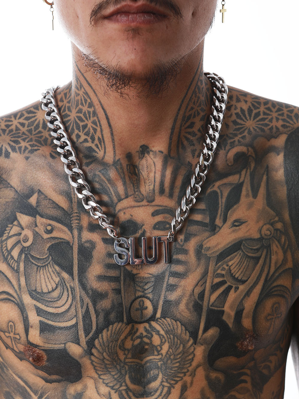 Designed for gay men, Rabo de Toro's SLUT Fetish Chain with Clasp captures the bold look of a solid chain and explicitly talk about your sexual appetite. The plate shows proudly the word SLUT.