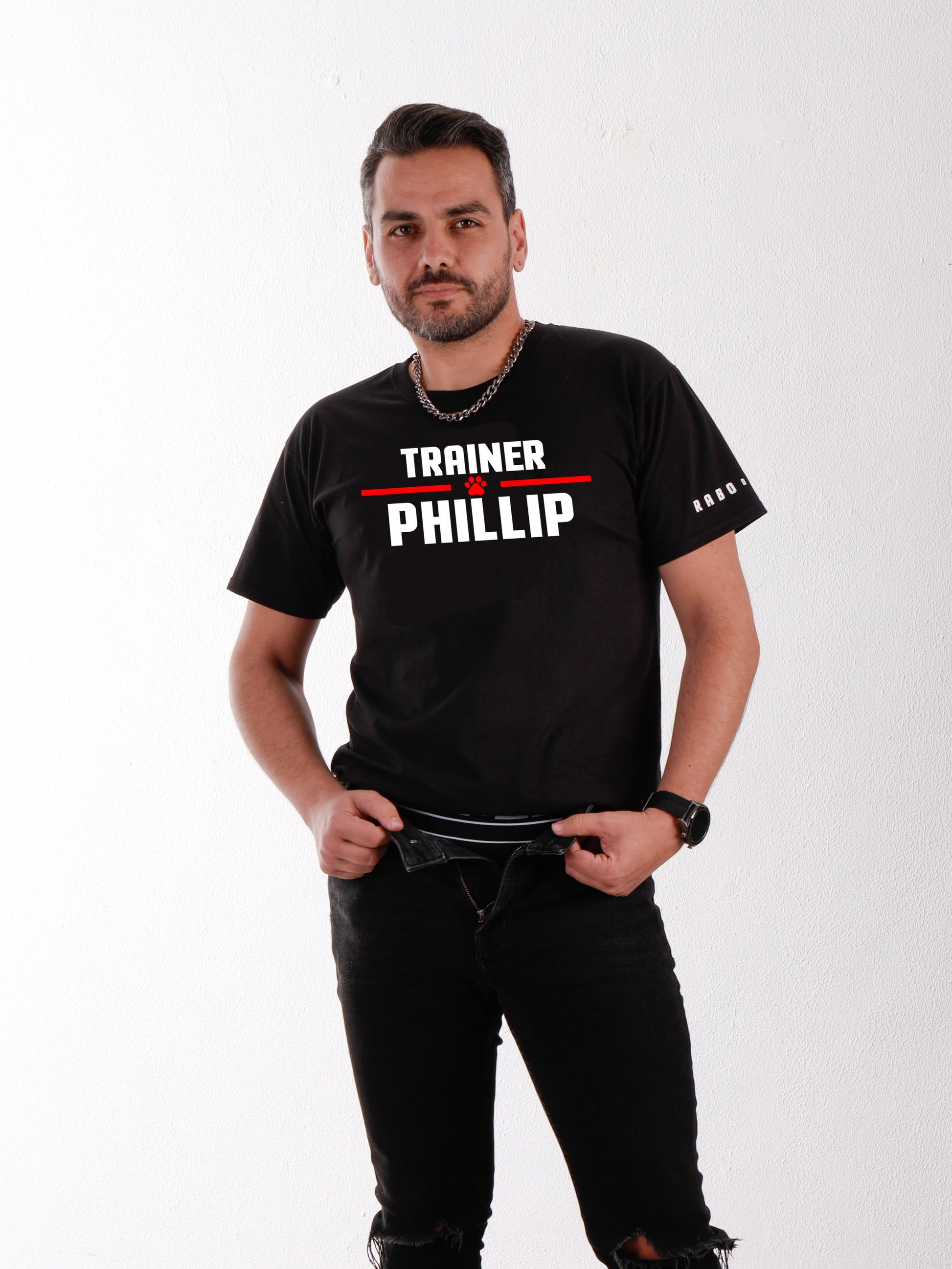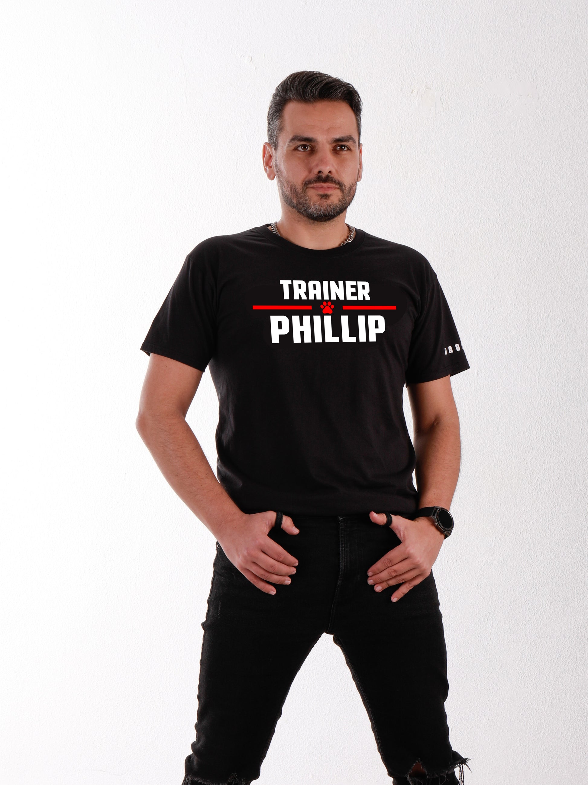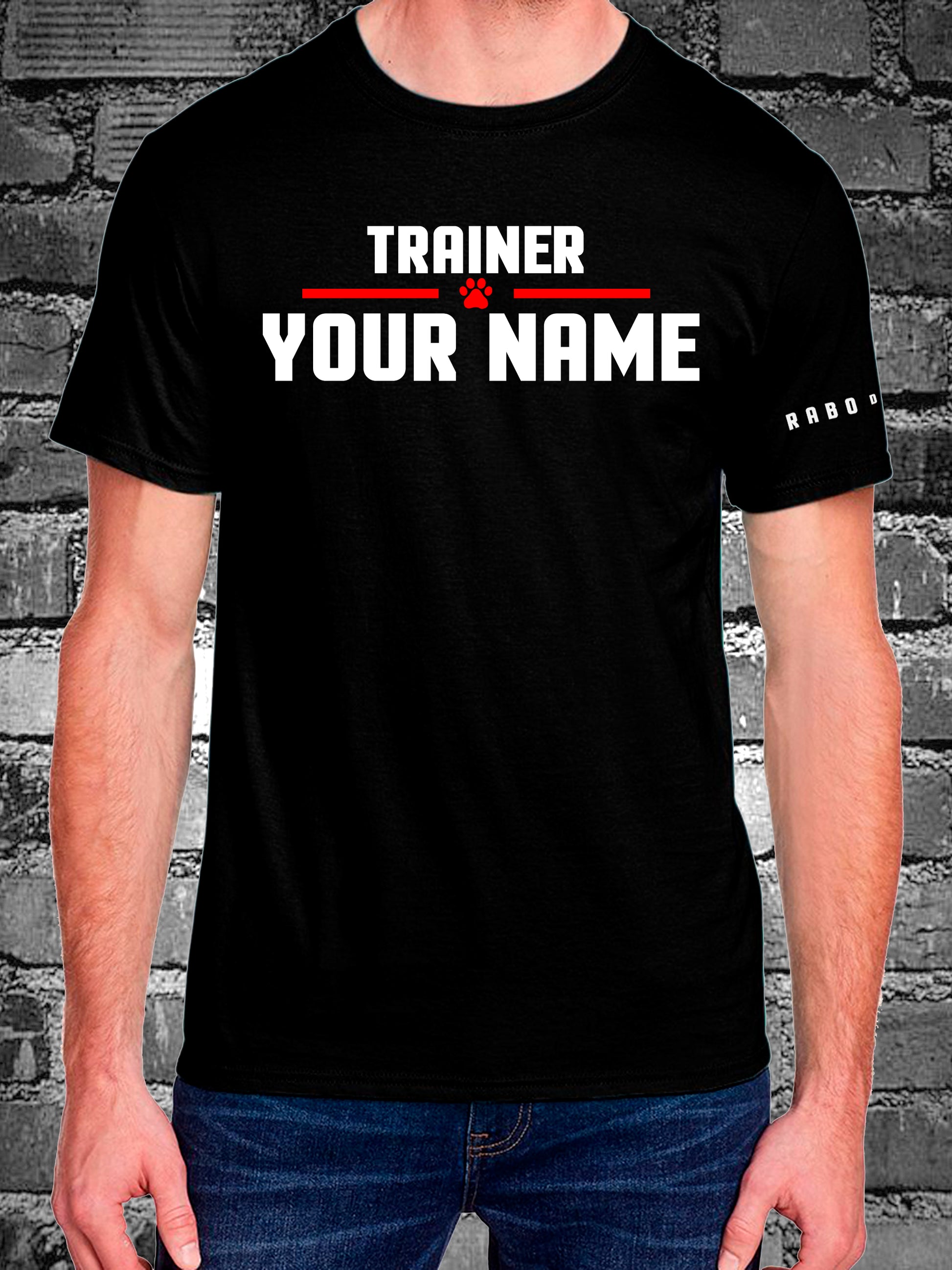 TRAINER with CUSTOM name - Black T-Shirt with Hanky Code and Puppy Paw detail